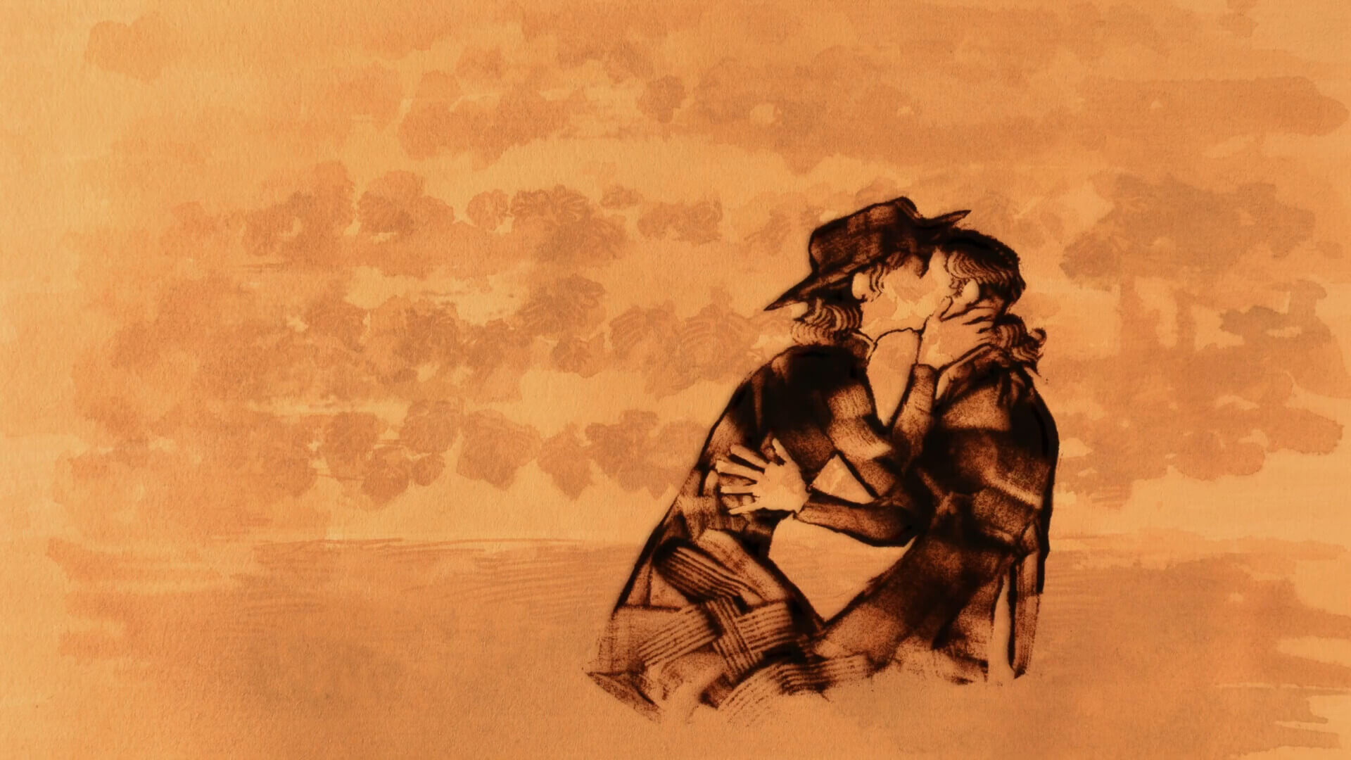 A silent, sandy impression of a secret affair between two Catholic priests. Their affection blooms between one bed of strawberries and another, in a garden next to an Italian rectory. The animation in this film is done entirely in sand. The backgrounds are painted with black tea and ink.