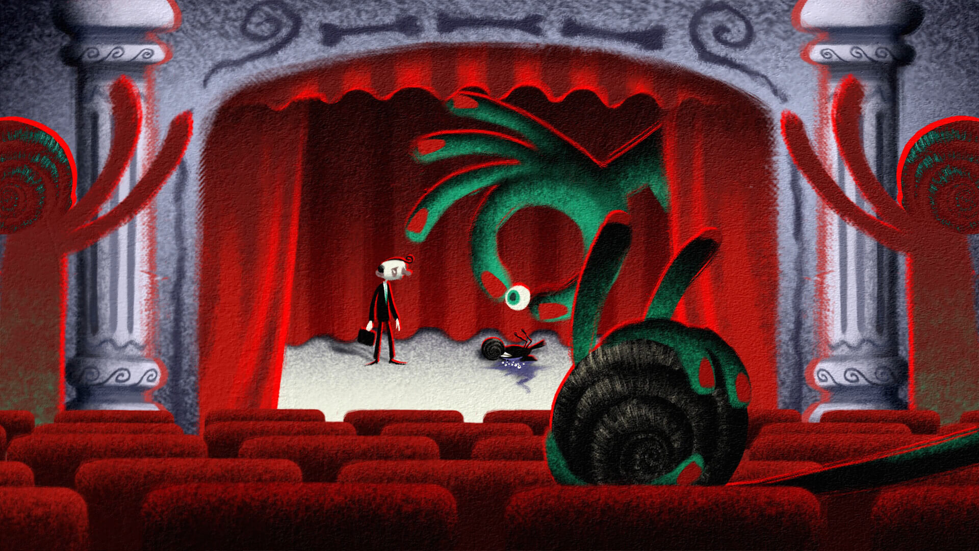 The short film introduces a fantasy story full of bizarreness, where a lonely "bone hunter" accepts a test of human nature from the "snail man" during his journey of searching for bones.
