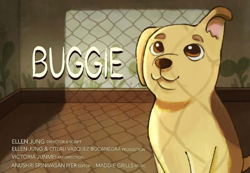 A puppy gets adopted by her human and returns to the animal shelter as a dog.