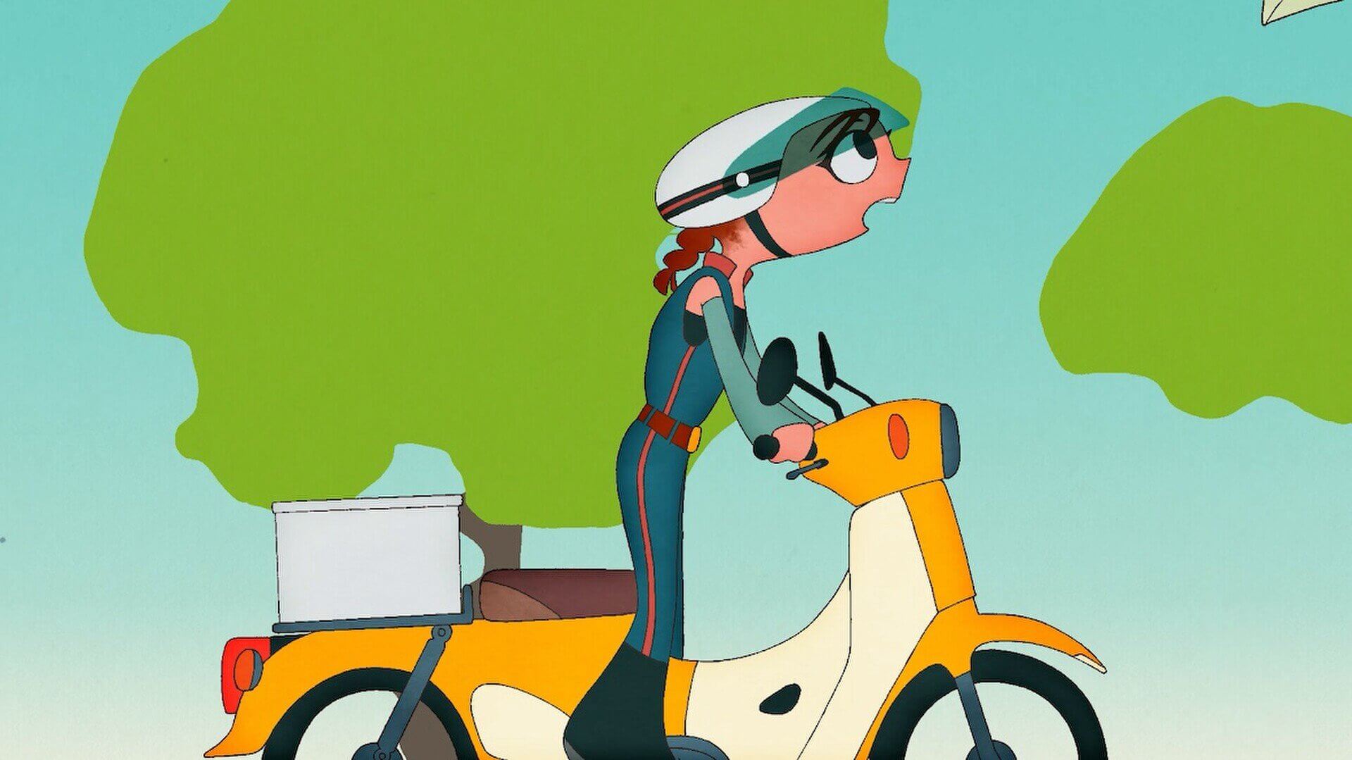 There is a girl who works as a post girl, delivering letters on her yellow motorcycle. One day, a letter is blown away by a sudden gust of wind, and she sets off to chase it on her motorcycle -beginning an expected adventure.