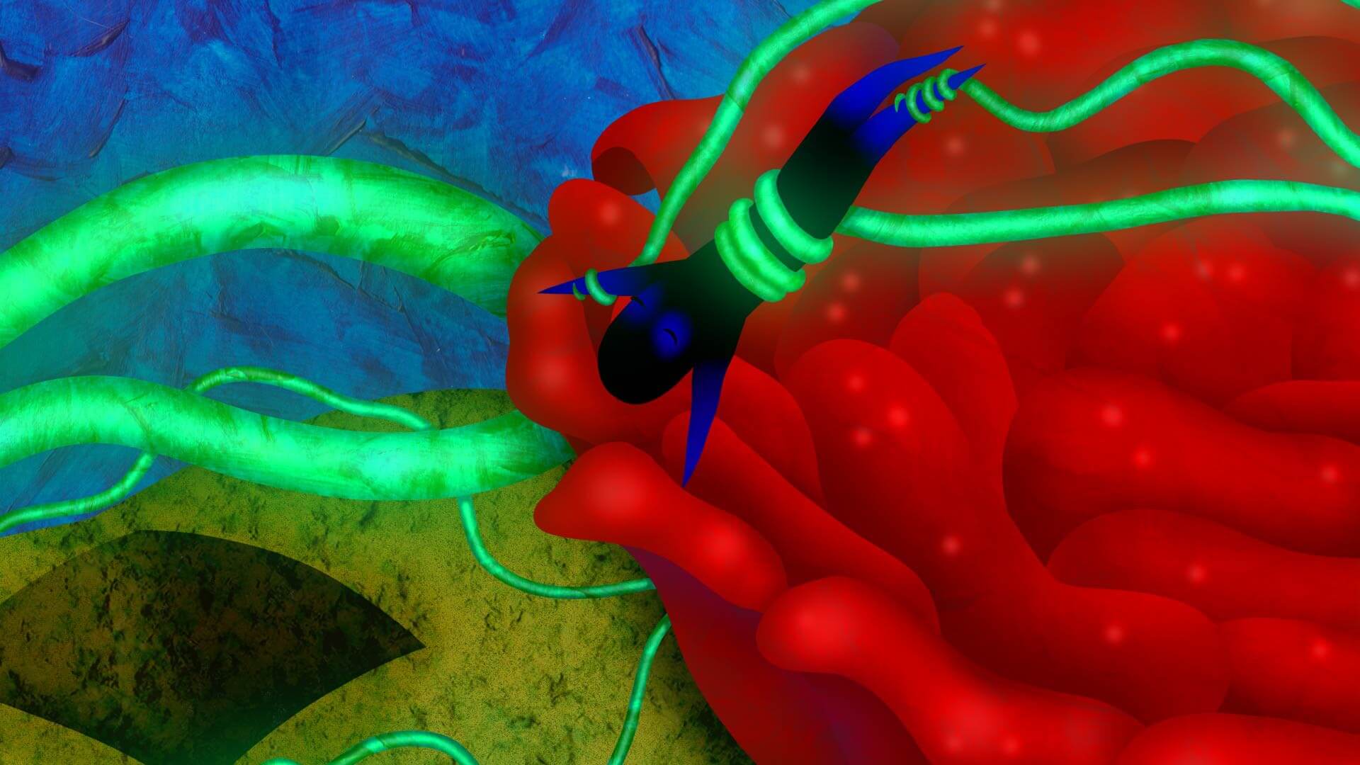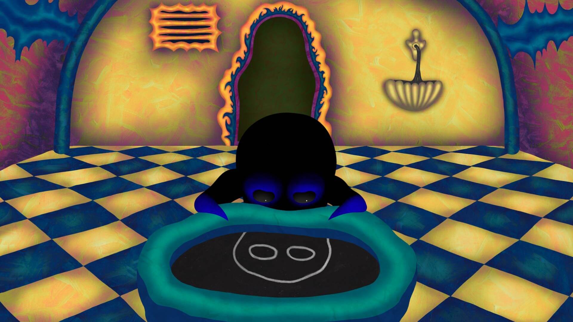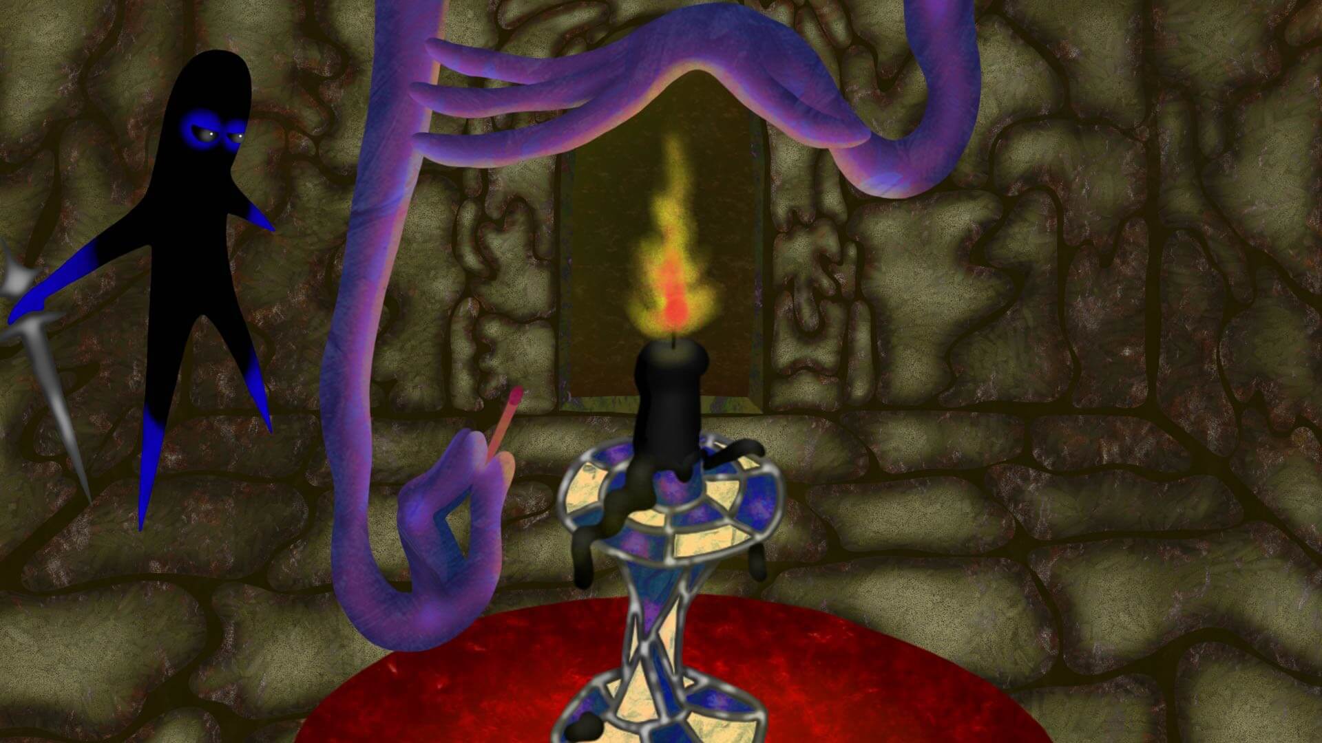 A shadow knight explores an interdimensional palace while being chased by the roots of an ever-growing rose.